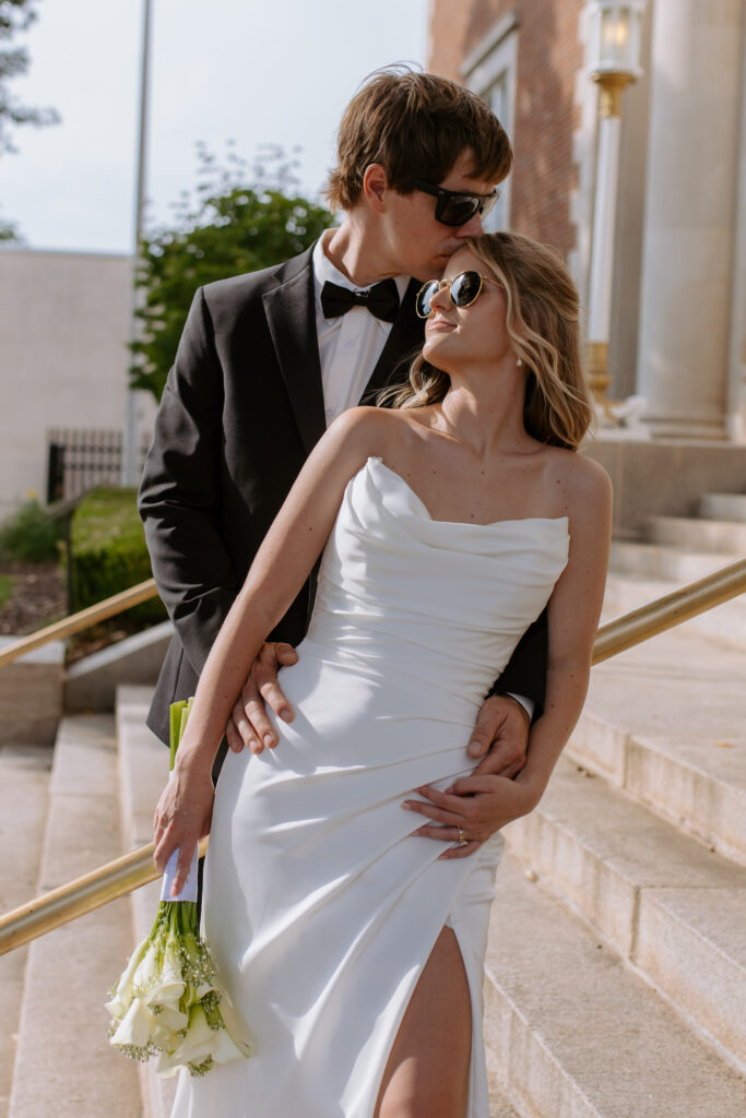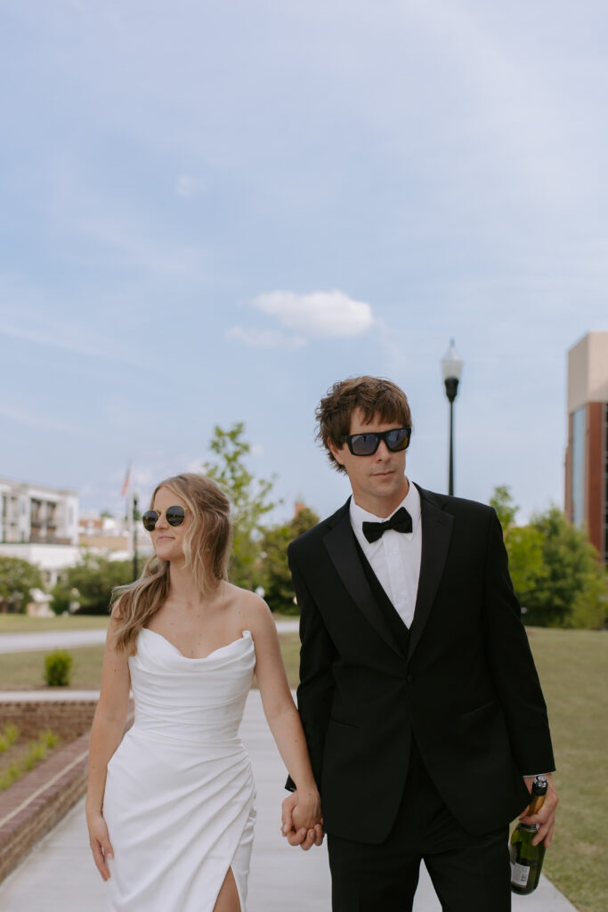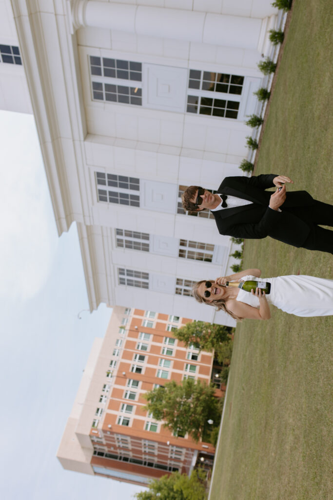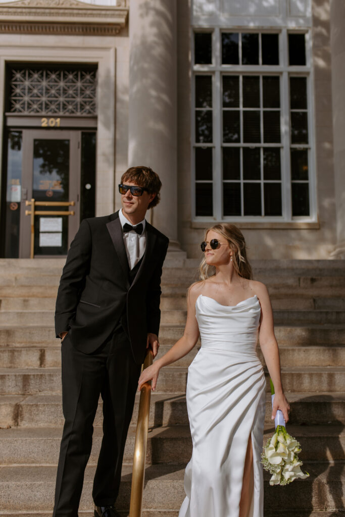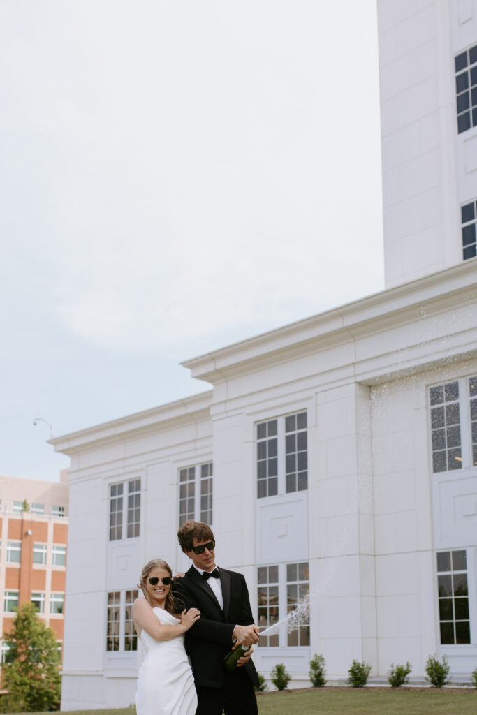 Decked out in their Ray-Bans, Brooke and Patrick ended their session exactly how the day felt — joyful, relaxed, and unapologetically celebratory — popping a champagne bottle on the courthouse steps as they officially stepped into married life.