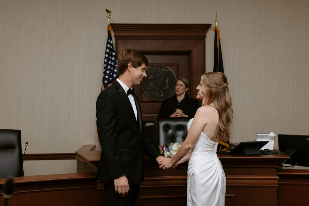 This was the part of the day Brooke and Patrick were most excited for — especially their long-awaited elevator moment, a small but iconic part of their courthouse vision.
