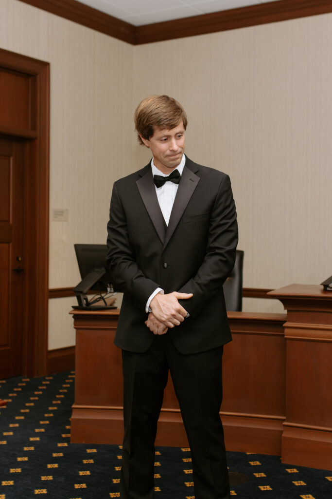 Brooke began her day at Bloom in Spartanburg SC, where she had her hair and makeup done in a calm, light-filled space before heading to the courthouse. Patrick prepared on his own, knowing the first time he would see her would be when she walked into the courtroom.